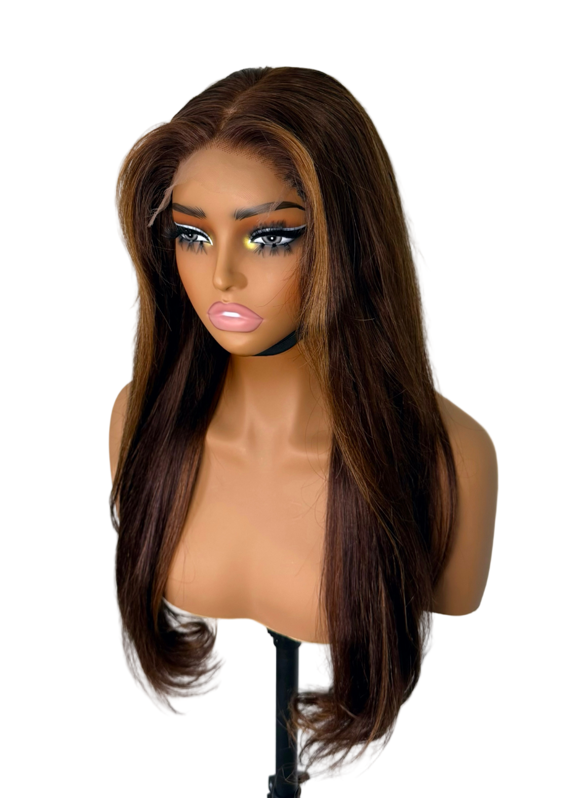 The Hazel unit is a the perfect blend of earthy charm and sophistication. The stunning brown Lace Closure Wig is infused with subtle golden brown highlights evoking a warm and sun-kissed elegance.